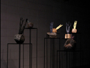 回到展區內部本身,從編號1~24的各組件作品全擠在空間明顯狹小的場域之中,被為數眾多的黑色圍欄圈住,對作品與觀眾形成既不協調又阻礙觀賞的分隔。不僅作品與作品之間沒有留下多餘的空間區隔,難以閱讀作品說明牌,部分作品甚至已難以分辨究竟是哪位作者的系列之作。如果說入場的說明裡陳述著的是要將每一件陶藝品當成果國寶等級般來呵護,那這個展出就像是百貨專櫃裡的名牌精品,被拿到特賣會場來拍賣般的簡陋。不僅區隔辨識不清,甚至還有不知為何要用透明壓克力盒裝的包覆展示方式,沒來由的佈展邏輯,不知為何的限制與擁擠狹窄,怎麼樣也看不出有「鼓勵青年陶藝創作者發揮創意,並讓國人與來自世界各地的民眾參觀」的大氣。在加上網站聯結缺失與限制拍照的規定,讓這次的展覽內容即使要透過人際傳播來口碑推展都毫無立足之地。