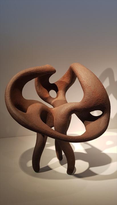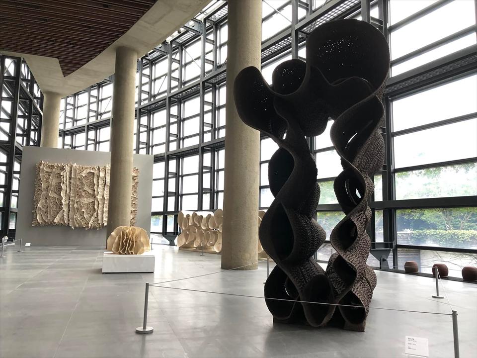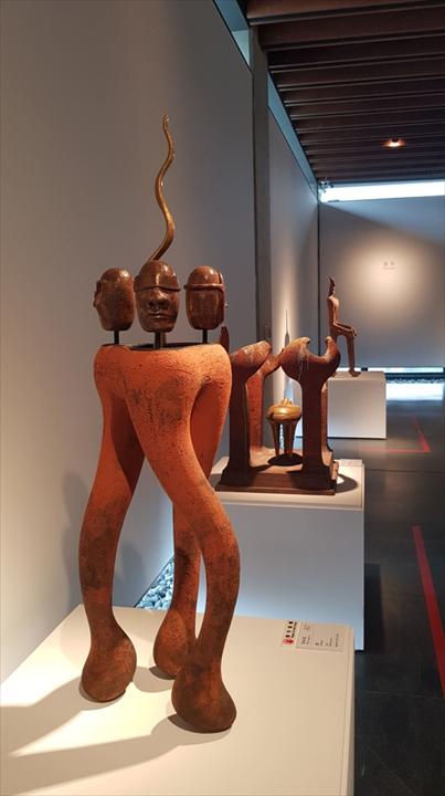 宛如穿梭一段時光隧道,2022年的今日,徐永旭的〈如皇〉、〈似妃〉來到了陶藝創作發展的指標入口,與邱煥堂的〈禧門〉相望,與觀者相會;這場巧妙的安排如同時光廊裡的任意門,吸引筆者回顧徐永旭創作歷程路上的一段風景:那個大型陶塑盛行於國際駐村、創作營的年代;因此,藉由訪談前輩陶藝家邱煥堂,曾經於2004年第一屆臺灣國際陶藝雙年展頒給徐永旭「評審推薦獎獎」的評審,聽取他如何觀看徐永旭今日的創作成果—徐永旭以身體編織泥條,令觀者驚豔的陶土藝術。