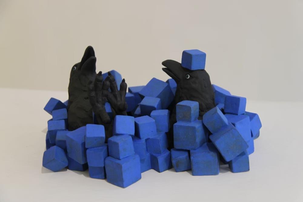 2023年9月8日於臺南深耕多年的藝術複合式空間青青土氣展出的「我仍還沒想好」聯展,參展成員是五位畢業於國立臺南藝術大學應用藝術研究所陶瓷組的同班同學,分別為林佩虹、洪湛筑、林心瑩、周易伯及吳昕恬。求學時期五人的關係就像是RPG遊戲(註4)中角色扮演各司其職,有趣的是,畢業後投身於創作的發展軌跡雖說歧異,但仍舊列屬於陶瓷創作領域範疇,筆者將嘗試以此展的五位藝術家做為引子,嘗試討論當代陶瓷創作者如何應對創作的處境與未來展望,以自身創作來帶出此生態中的不同面向。