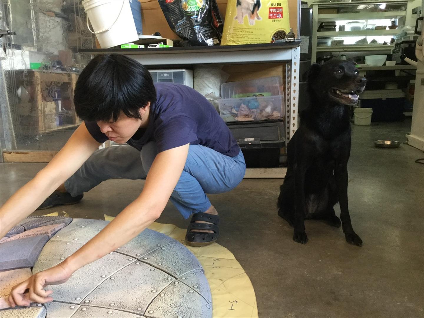工作室座落在麻豆市區的外環處,比鄰著芒果園的鐵皮房舍,這是呂之蓉一人兩犬共同棲身,並自由揮灑創作的快樂園地。畢業於國立臺南藝術大學應用藝術研究所陶瓷組的她,瞥除臺南人身份的誘因外,最終選擇留在臺南麻豆竟是偶然的機緣,工作室的原承租者為研究所的指導老師張清淵,但種種因素下並未承租,消息輾轉傳入她耳中,亟欲找尋創作場所的她二話不說便立刻接手承租,落址與鬧區保持著遠近調度得宜的城鎮外圍,讓她的生活與創作之間取得巧妙的平衡。