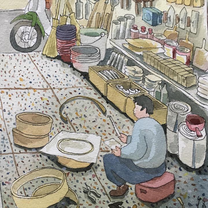 台灣各地的五金行都有其特色。二十多年前,有一位陶藝工作室的同好,約我一起到鶯歌的五金行尋寶。我們在週末假期的前一晚,各自來到台北,隔天騎了好久的摩托車來到了鶯歌鎮。五金行老闆聽我們說要買篩網,就拿出好幾個木框,問我們要多大直徑的?網子要幾目?問完,坐在小板凳上,一陣熟練的敲打,一個堅固耐用的篩網就完成了。老闆工作的空檔,我看到五金行裡有許多陶瓷相關的器材,耐火棉、鎳鉻線、切土的鋼絲,甚至是測溫棒一應俱全,我拿著戰利品走出五金行,興奮地跟同好說:「這家五金行真特別,居然會賣篩網!」同好說:「當然囉!這裡是鶯歌耶,做陶的地方。」
