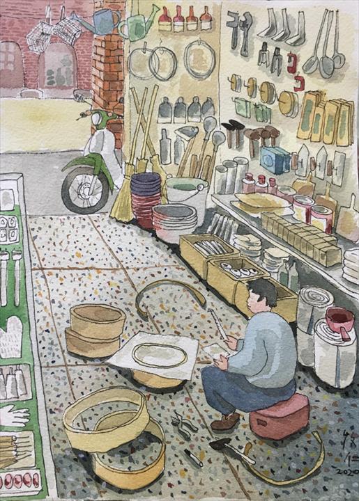 幾年後再訪鶯歌,發現販賣的篩網都變成不銹鋼的框,老闆說因爲做木框的師傅退休了,木框很難取得,只得用白鐵代替。此後,我總是更加留心觀察每個地方的五金行裡的特別商品,也珍惜手中的木框篩網。