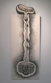 敘事的覺知:琢磨思辨的微光 施惠吟在2000年之後的創作,一方面她已進入研究所的新階段,另一方面是那些年她經歷了家人生病的無常,轉向關注人的存在狀態與存在價值的省思。如2002年的「偶然人間」系列,半抽象的人像塑造,以挖空的軀體來表現人及其存在的實虛狀態,再透過人像的肢體動作暗示,或沉思、或孤獨、或期盼等情狀,暗喻著人當自省的提示。又2004年發表〈自傳〉、〈逐一…累積〉等系列作品,是結合陶瓷與水墨媒材,也是平面與立體空間的串聯,將兩種大不相同的材料,以有機抽象的風格,在造形上、色彩上、質感上,讓陶瓷物件與平面符號兩者,在視覺上分不出彼此,在觸覺上也曖昧難辨,形成二維空間與三度空間的錯覺與詭辯,企圖打開觀者辨別細微差異的感官知覺。  |  |  | 逐一...累積2004 水墨/陶塑、紙本/陶土 | 因果(一組二十件)2017 陶土、化妝土、白釉 總尺寸約180×15×8cm | 因果#10 2017 白陶土、瓷土、白釉、黑釉 1235℃氧化燒 15×15.5×4.5cm 6×6×6cm | 長年學佛的她,2017年提出了「如是.如是」系列,是總和了她的人生經驗和修習佛法的心得,主題談及「因果」、「如夢」、「輪迴」、「彼岸」等概念,是佛教經典中的中心思想。在此系列作品中,她更收放自如地運用各種風格與形式,簡潔且直率地鋪陳出一方心語。如在「因果」系列中,她以白色釉面的圓盤容器及其上的陶瓷果核為主角,圓盤內承接了果核,象徵了「因」與「果」的關係;而「浮雲」系列是將10件不同大小與外型的容器,以底部平行於牆面的方式,懸掛於牆面上。這些容器以拉坯成形後再變形如雲朵狀,其中間虛空的形式與口緣處橘黃的漸層色,彷如夕陽餘暉下的雲朵,飄忽間散盡、虛無,象徵生命的無常與人生如夢的感嘆。  |  | | 浮雲 | 浮雲#9 2017 陶土、白釉、色釉 1235℃ 23.5×19.5×9㎝ |  |  | 輪迴 2017 熟料陶土、化妝土、黑釉 總尺寸約260×260×38cm | 輪迴#2 2017 熟料陶土、化妝土、黑釉 1235℃ 21×21×17.5㎝ | 另一作品「十二因緣」系列,是取佛教教義中的「十二緣起」為示,以12個容器來代表輪迴中的12因緣。此12個圓形容器各個造形不同,最大的特色是,每一件都如碗形,中間部分都是虛空的,但她運用化妝土繪製幻影假象,彷彿有些碗形中間還有它物或者根本是實體的錯覺,有些在口緣處做出摺痕,逼真的錯位寫實功力著實令人驚嘆,述說著虛虛實實的真相與假相,暗示著觀者得用心體會感受身體的感知感覺。又如〈花非花〉,幾何線條明確的陶製花器上,開盛著陶製花朵,一旁落下的花,帶出平面上黑色線條的漣漪,花開花落的循環,二度與三度空間之中虛實轉換,是生命無常的感嘆。  | | 如夢~花非花 2017 陶土、化妝土 展牆總尺寸約280×120×10cm | 而「彼岸」系列,則以18件由半具象符號轉化而來的物件,如椅子、山形、鳥、房屋、切半的梨子、張頁的書本、鑰匙、問號、心形符號等,羅列於如地圖般的線條格狀中,試著去傳達生命歷程中所需經歷的幾個重要階段,雖然每一個人的生命階段與重點大不相同,但不變的「有因必有果」循環關係。 施惠吟以其純熟的造形能力,用抽象隱喻的方式,傳達她內心所想的話語;在形式符號運用中所隱晦的敘事性,掌握在她對陶瓷媒材的熟稔之中,身體感知的覺察力,藏身於她細膩綿密的思緒裡。  |  | 彼岸~#真理 2017 熟料陶土、化妝土 1235℃ 16×7×37cm | 彼岸~#2017 熟料陶土、化妝土 1235℃ | 無聲之音,在靜寂之處,遇火重生外表溫柔纖細、話不多的施惠吟,從小腦海裡就有很多生動的畫面,直到遇見陶土,透過與土的互動,才全然自在地吐納而出。於是,她速寫下心中的想像,深思熟慮地醞釀,然後,等待時機,大膽地形變、用色。在她的世界裡,那是無聲勝有聲的歷程,是遇火而重生的新生,展現出無比的光燦與美麗。 (本文原載於藝術家雜誌 2017.07號) 文 / 莊秀玲 |