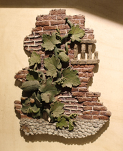 觀賞許明香的作品,眼光仔細地尋找,朽木的腐敗,彩繪的斑駁,風化的紅磚,剝落的石灰牆面,不免讚嘆作者精湛的手藝,將這些質感表現得淋漓盡致。慢慢地看,在破損屋簷下可能會發現一窩麻雀,或者在剪黏的燕尾上,站著幾隻麻雀,心中回想起從前台灣處處可見的房子、廟宇,這些曾經是一般常民的生活重心,曾經是一般百姓努力付出,換取溫飽的地方,曾經是百姓信仰中心,藝師們展現手藝裝飾得美輪美奐,一切奉獻給神明的地方。隨著時光推移,牆面彩繪可能因為台灣氣候高溫高濕而開始生霉剝落,廟宇可能因為地震癱倒,也可能因為翻修,丟棄以前的木刻,可能因為重新修葺大門,掩蓋前藝師的彩繪,這些曾經是心目中美好年代的作品,如何保存?許明香希望藉由作品,喚起大家的注意,這不只是政府的政策而已,是生長在這片土地上的百姓共同責任。她的作品可以見到台北市寶成門,新竹市東城門迎曦門,台南市赤崁樓,乃至於異國文物風情。記錄下建築格式,常民居住生活痕跡,你我曾經走過的,埋在記憶裡的地方。 她的作品分成立體造型和浮雕,立體造型可環繞觀賞,有如屋與外觀,各個面向都非常豐富,浮雕則表現廟宇內、房舍內,樑柱之間的空間感,或者巷弄間錯落的屋舍,表現得更深遠。 1983年起,從事陶瓷原形雕塑的工作,多年的工作經驗,練就一身好本領,1993年起開始已投入陶藝創作之路,將自己內心最深的記憶與情感作為主題,以寫實技法呈現,從1996年獲得民族工藝獎二等獎,往後獲獎不斷,2001年獲得全省美展金獎,並獲的永久免審查資格,現在是全省美展永久免審查作家協會理事。 許明香作品欣賞   |