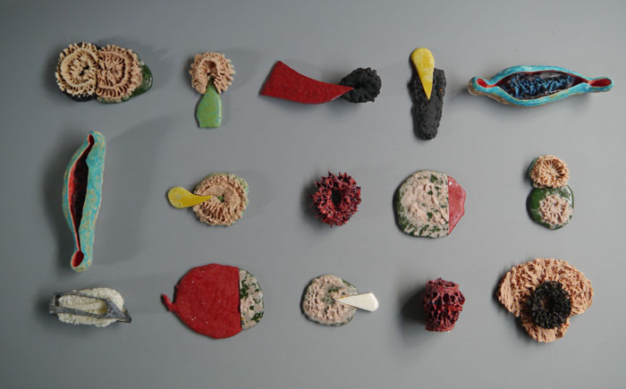 在研究所之前,許瓊文的創作主要以模具壓製臉部,再進行變形、組合,傳達人性被扭曲、無助的狀態。研究所時期,創作主題延續了對人性的批判,但為了表現出透明、柔軟如皮膚般的質感,在張清淵老師的支持下,加上半年時間在美國當交換學生的經歷,讓她有了實驗的勇氣,在畢業製作上大量採用矽膠和塑膠等媒材,表現出她想要的透明感,也滿足她立即想看到成果的創作方式,但卻也因此未能進一步學習陶藝製作技巧。