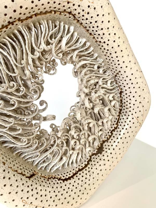 「我覺得可能從1997-2006年期間創作慈濟靜思堂陶燈系列,大量用『雲龍紋』開始。當時茹素如修行般創作時,很享受做雲龍紋的手感,直到我在人生最低潮時—在山林遇見『蕨』!」彭雅美回溯著說道:「那種面對生命充滿問號、漣漪,從宇宙觀看人事……蕨類線條是如此謙卑的俯瞰著大地,我深受感動,大自然與蕨的力量療癒了我,之後就此展開……。」