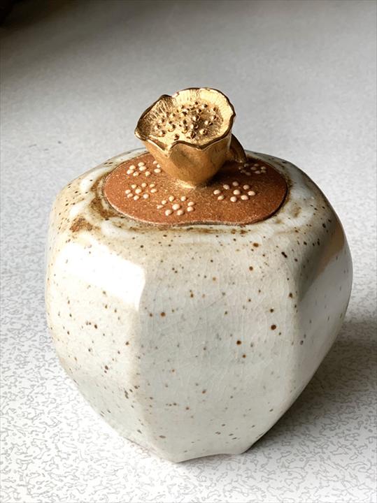 而這個「重回」,讓許淑珠重新思考,如何以「友愛環境,不傷害到自己、別人」的方式創作,於是她捨棄了施用華麗的釉藥,改以長石、天然木灰、土及刨光的方式來裝點作品,更以刀切法來呈現作品的多樣及線條美,開啟了她陶藝創作的另一個面向,創作了一系列的茶倉及茶器作品。