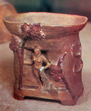 說來有趣,1940年代現代陶藝的發生,原來是西方世界對非歐文化,對東方的借鏡。這種借鏡是因為社會紛擾和戰亂的文化自省,也是原始主義運動的精神延伸。而現代陶藝的發展更因緣際會的瘋迷全球。陶藝這個媒材因此從傳統工藝的傳統角色,成為當代藝術領域的新媒材,新科別。我們略為環視近百年的現代陶藝發展。初有畢卡索,露西‧梨(Lucie Rie),伯納‧李奇,濱田庄司…。接續著有無數陶藝家參訪世界各地原住民部落或各地傳統窯場。更有為數眾多的陶人、陶藝組織交織成國際網絡。1970年代後的台灣,同樣有為數眾多的陶藝家跳脫傳統工藝性,將注意力放在陶土的純粹性藝術上。但跨入二十一世紀,也許是全球化地球村的關係,也許是後後現代的拼盤與複製性的文化現象,也似乎是地平線上已不存在原始的未知文明。在複製(抄襲)與變造,在簡潔與冷美感的視覺官能電子化風潮下,原始主義精神運動似乎已到盡頭。在數位化行動影像裝置微型化的當下,觀光式浪漫的異國情調簡單順手,而往日的蠻荒蹲點,力行樸素生命則難以下嚥吧?  |  |  | | 畢卡索_盤_鬥牛場 | 高更_Pot with Bathing Girl_赤陶 | 高更_Water Jar_赤陶 | 古老的與現代之間如何接續?原始與當下如何融合?或者說現代陶藝如何返顧以往?…這個議題很吸引興味。長久以來它一直是某些類型的藝術家、文化工作者的探尋目標。無論如何,凡隱含探索與冒險精神的實踐…探詢心靈底層,從自我出發,帶著原始呼喚的血液的創作,不論被標示為何都會是永遠的原始主義。 十三行_人面陶罐 ------------ 網路資源 1.十三行博物館 http://www.sshm.tpc.gov.tw/html/sshm/index.jsp 2.2014台東南島文化藝術節 https://www.youtube.com/watch?v=jc5KSpCiO9Y 3.高雄市立美術館,南島當代藝術展 http://www.kmfa.gov.tw/home02.aspx?ID=$6002&IDK=2&EXEC=L 4.國立草屯工藝研究中心 http://www.ntcri.gov.tw/zh-tw/Home.aspx 5.顏水龍網站 http://zh.wikipedia.org/wiki/%E9%A1%8F%E6%B0%B4%E9%BE%8D http://vr.theatre.ntu.edu.tw/fineart/painter-tw/yenshuilong/yenshuilong.htm |